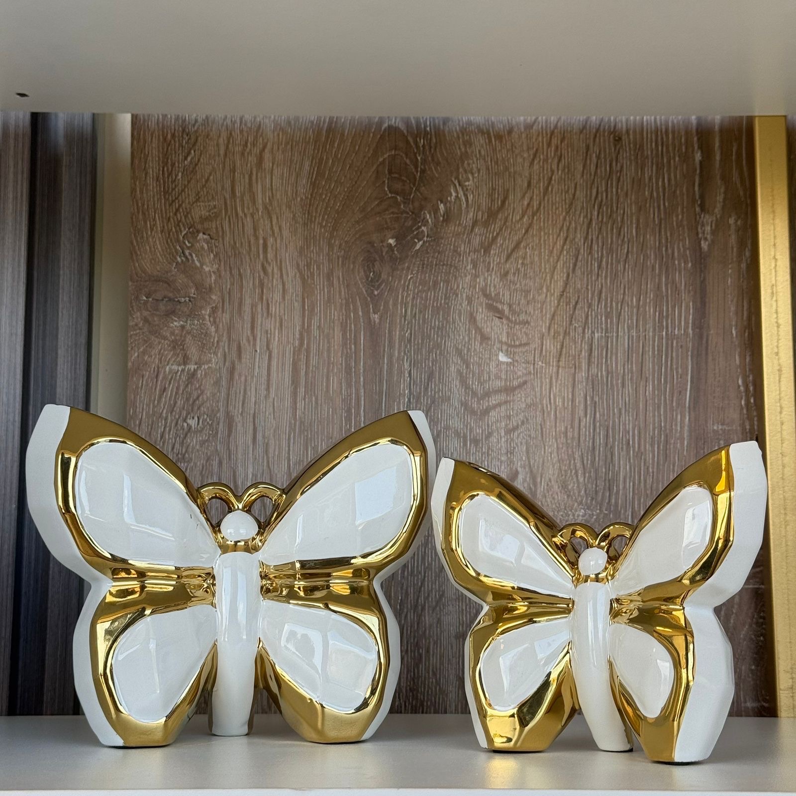 Elegant decorative set combining golden butterflies with a stylish bonbonniere.