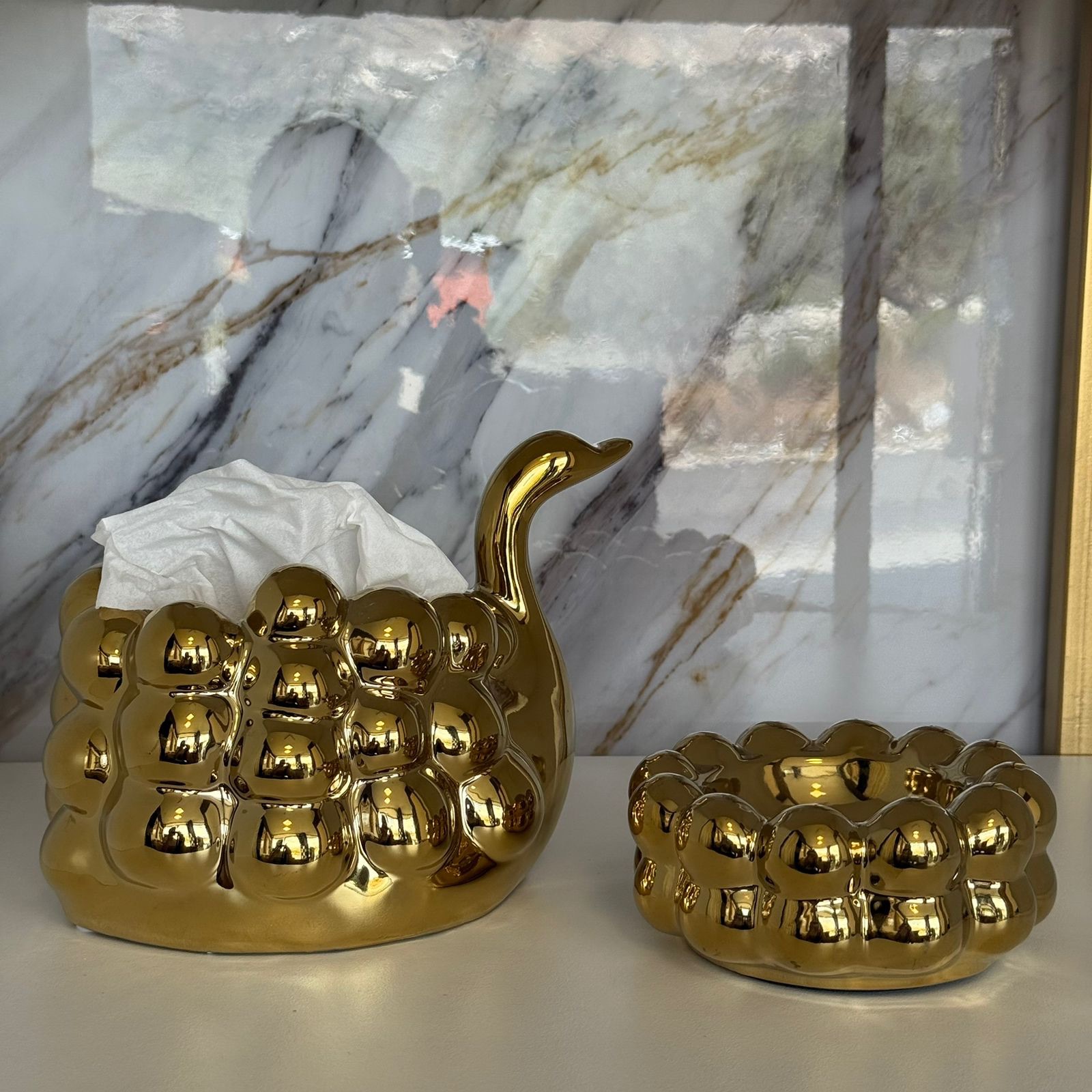 Elegant ceramic tissue box with a unique flamingo design
